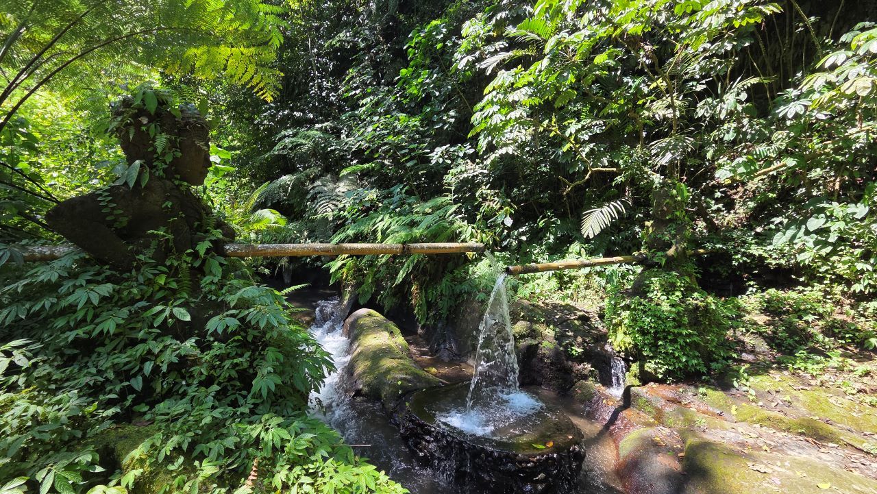 Die Quellen werden durch zwei Bambusröhren zueinander geleitet, die von einer männlichen und einer weiblichen Statue gehalten werden, die vom Dschungel überwuchert sind. Ein mystischer Ort, an dem wir ganz alleine waren.