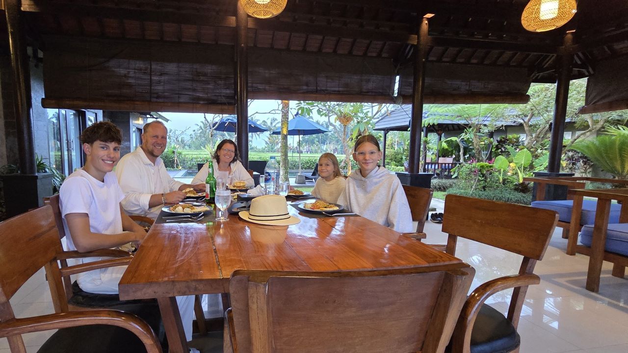 Wir aßen an dem großen Massivholzesstisch, während die Sonne langsam hinter den Reisfeldern versank. Ein Blick wie aus einem Bildband über Bali. Es fühlte sich an wie eine Einladung – von Bali selbst.