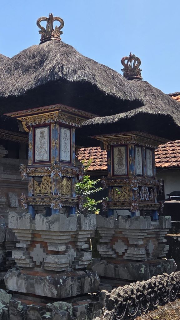 Unsere Fahrerin wirkte aufgewühlt. Sie griff zu ihrem Handy, öffnete eine App und spielte ein balinesisches Gebetsmantra in voller Lautstärke ab. Das sollte offenbar dem Schutz der Weiterfahrt dienen. Und tatsächlich: Die restliche Fahrt verlief ruhig und sicher – als hätte das Mantra tatsächlich alle bösen Geister besänftigt.