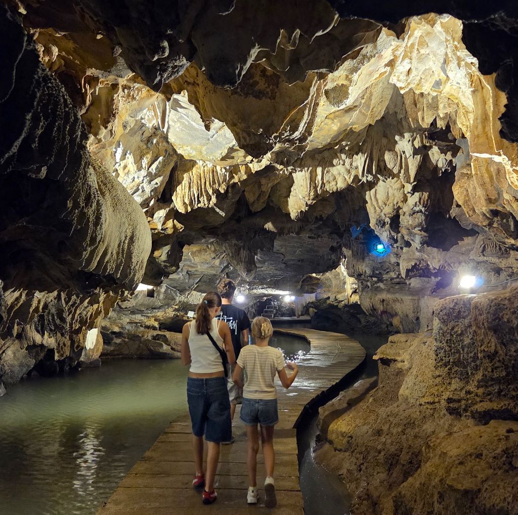 Mit dem Fahrrad fahren wir zum Thung Nham Ecopark. Dort erwartet uns eine überraschend vielseitige Landschaft: stille Seen voll Spiegelungen, Höhlen voller Tropfsteinformationen, botanische Gärten, kleine Tempel, üppiges Grün und vor allem: Vögel.