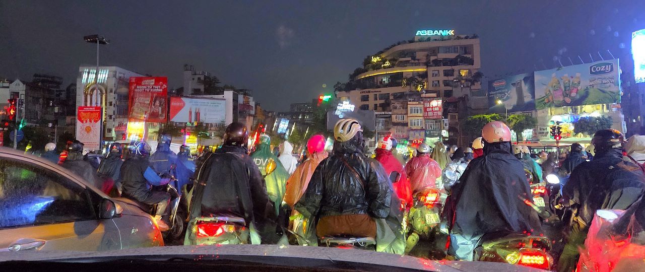 Wir haben Hongkong verlassen und landen am späten Abend in Hanoi. Es fühlt sich an, als würde unsere Reise in eine völlig neue Welt eintreten. Die feuchte, warme Luft schlägt uns entgegen, und über der Stadt hängt ein düsterer Himmel, der Regen ankündigt. Genau das Wetter, das man sich nicht unbedingt wünscht – und trotzdem kommt es uns am Ende gelegen.