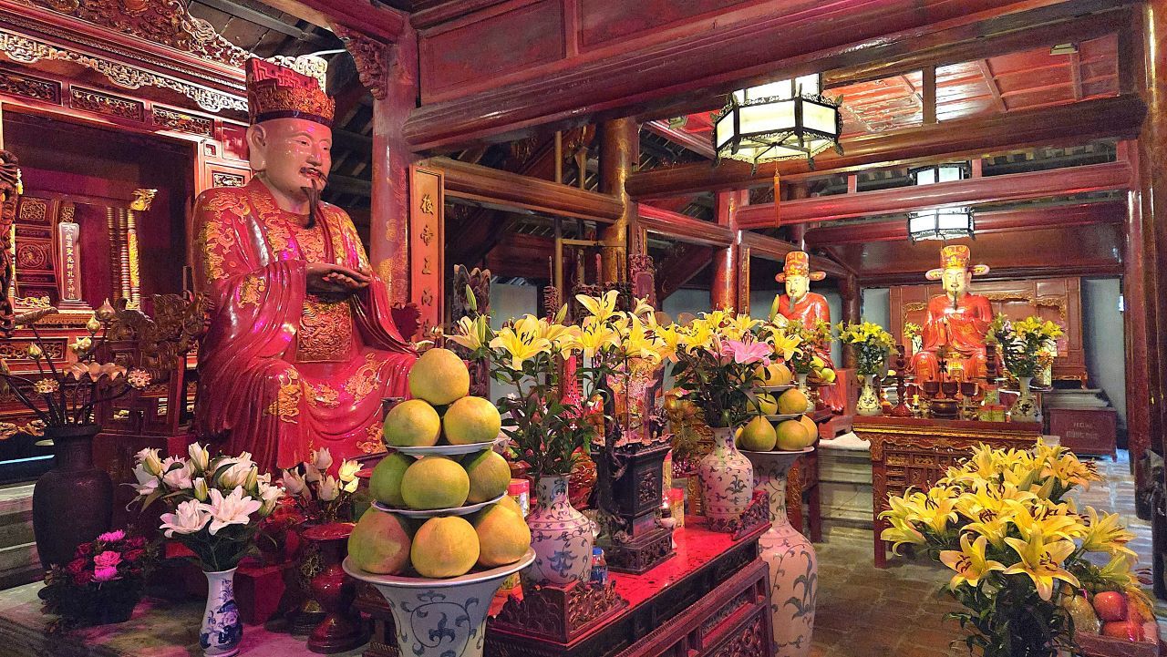 Der nächste Halt ist wohl einer der schönsten Orte Hanois: der Literaturtempel, Vietnams erste Universität. Ein weitläufiger Komplex aus Gärten, Torhäusern und Teichen, in dem seit mehr als tausend Jahren Konfuzianische Weisheit gelehrt wurde. Hier spürt man eine jahrhundertealte Ehrfurcht vor Wissen und Bildung.