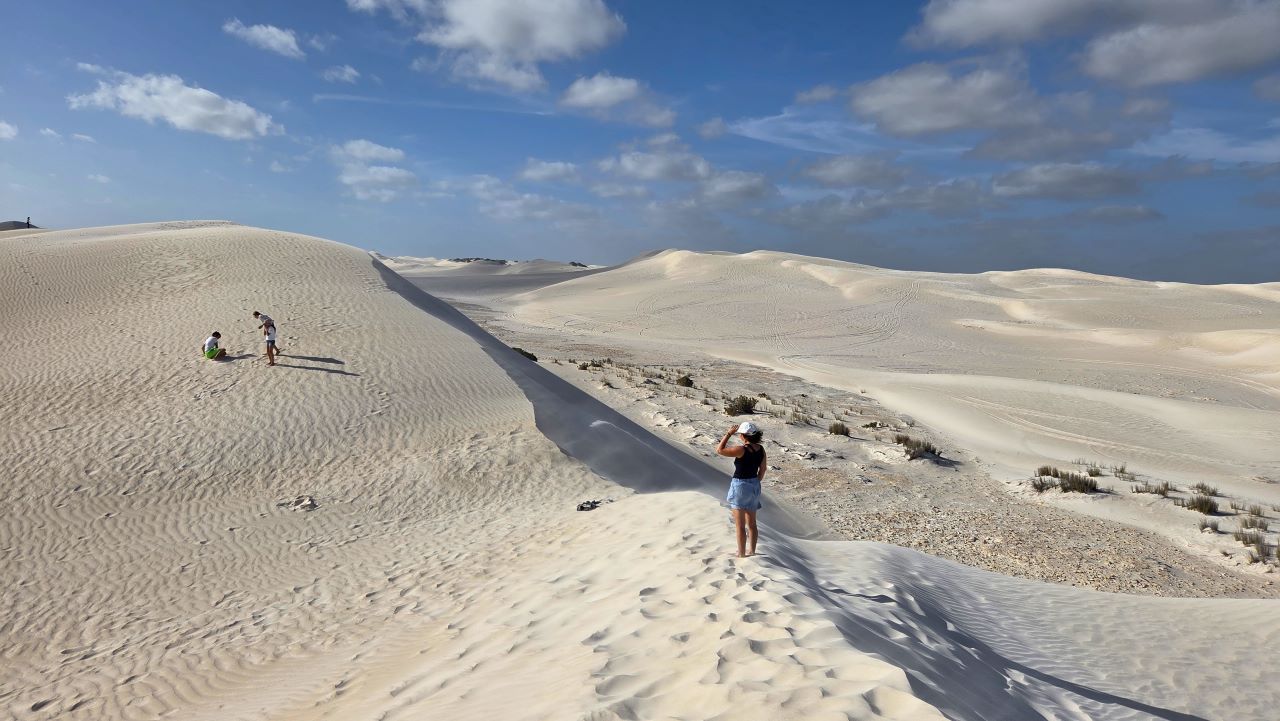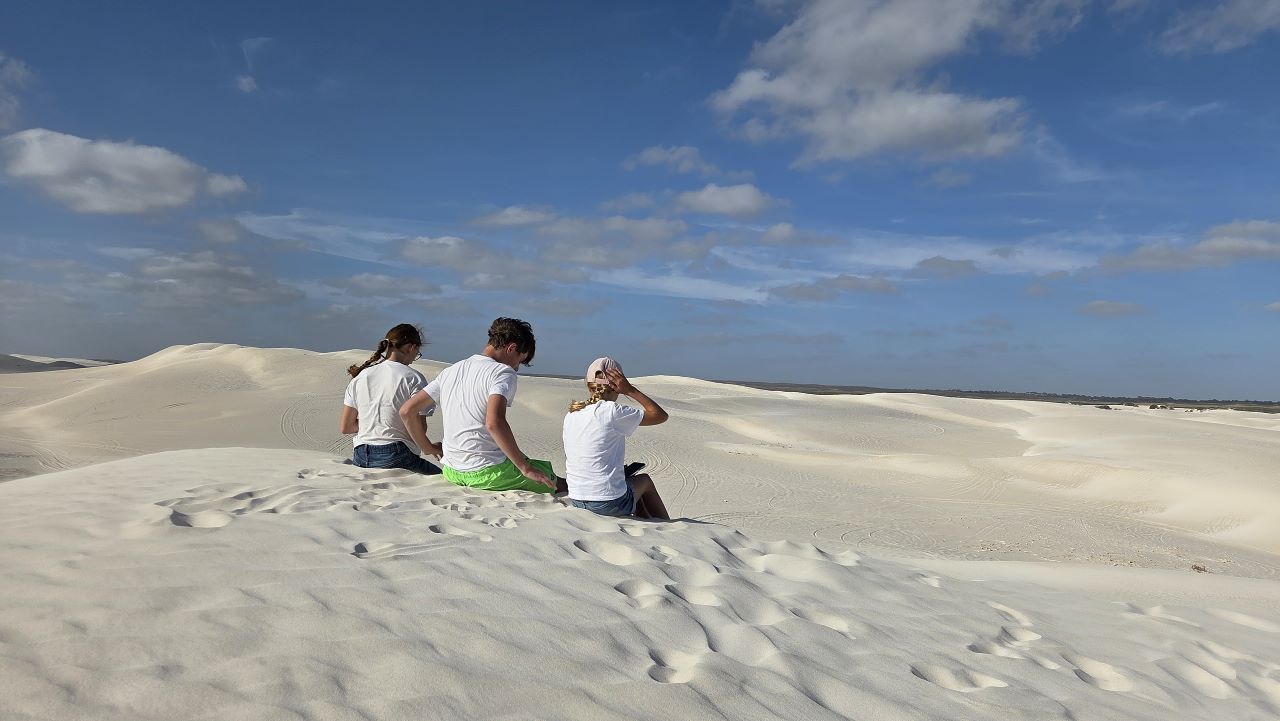 Am nächsten Tag folgen wir der Küste weiter nach Norden. Bei Lancelin breitet sich eine gewaltige Sandwüste aus – hohe, weiße Dünen, die scheinbar direkt aus dem Nichts auftauchen. Die Kinder rollen lachend die Hänge hinunter, Sand überall, Sonne im Gesicht. Es fühlt sich leicht an, frei. Wir bleiben bis zum Sonnenuntergang atmen die klare Luft und genießen den Augenblick.