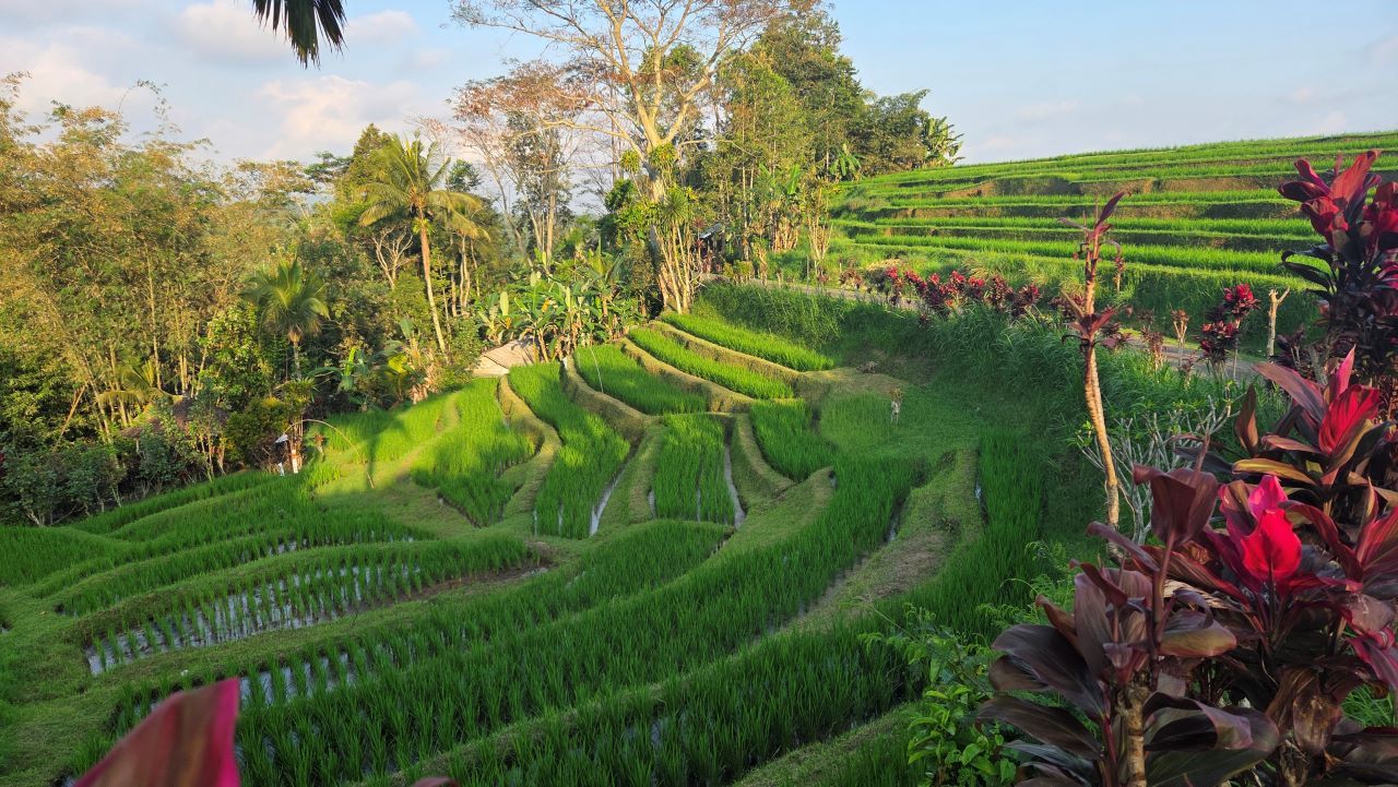 Wir aßen an dem großen Massivholzesstisch, während die Sonne langsam hinter den Reisfeldern versank. Ein Blick wie aus einem Bildband über Bali. Es fühlte sich an wie eine Einladung – von Bali selbst.