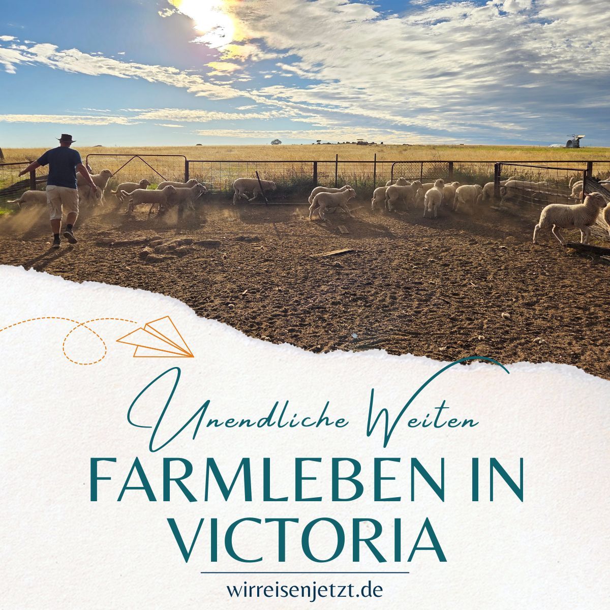 Während unserer Tage auf der Farm kommen die Scherer zum Crutching. Dabei werden die Hinterteile der Schafe geschoren, damit das Lammen leichter fällt und sich keine Fliegen dort einnisten. Karen und Geoff besitzen mehr als 1.400 Schafe, zumeist Merinos. Es liegt also ein ordentliches Stück Arbeit vor uns.